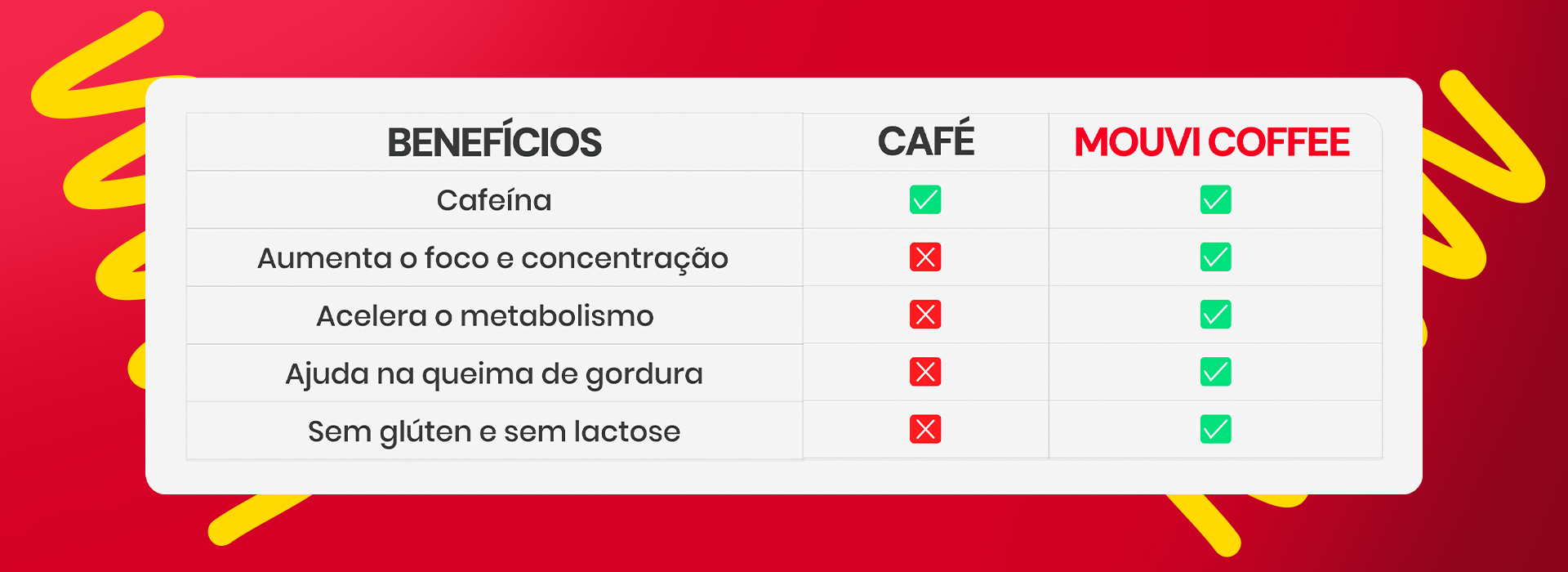 Sim! O Mouvi Coffee também é ideal para quem precisa de mais disposição e foco no trabalho ou nas tarefas diárias. Ele acelera seu metabolismo e te mantém energizada.